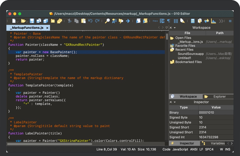 010 Editor for Mac 是一款专业的文本/十六进制编辑器,用于编辑机器上的任何文件、驱动器或进程。使用二进制模板技术,010 Editor允许将二进制文件解析为可理解的数据结构。该编辑器具有标准的“剪切”、“复制”和“粘贴”命令,支持大文件,所有编辑操作无限制的“撤消”和“重做”。使用Inspector可以轻松编辑多种不同格式的数据。