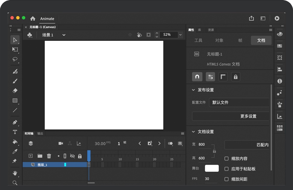 无缝地将动画发布为视频、动态 GIF 或 HTML5 canvas 格式。