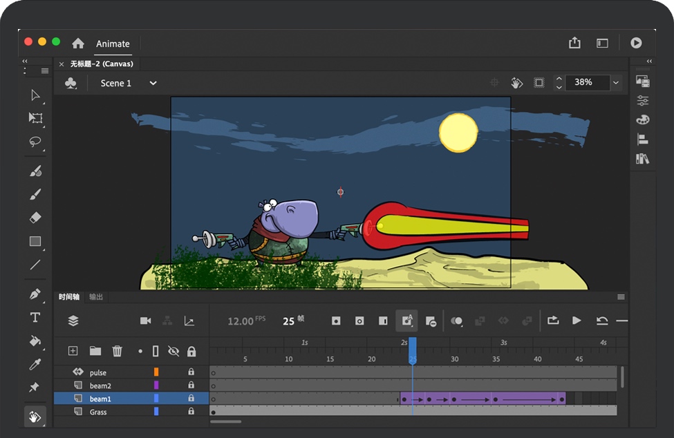 Animate 2021 for Mac 是一款动画特效设计与合成软件,能够帮助设计人员设计适合游戏、应用和Web的交互式矢量动画和位图动画,Animate 2021 for mac让卡通和横幅广告栩栩如生,适用于动画制作人员、游戏设计人员、广告开发人员、动画制作人员及教育内容编创人员使用。另外Animate 2021还增加了虚拟现实 (VR) 创作和发布,可以利用您的2D技能导出360VR动画,并创造用于虚拟演练的沉浸式体验。