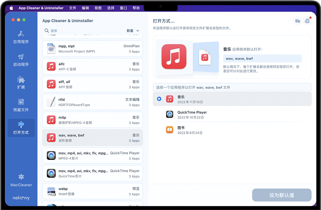 管理macOS上的文件关联,并选择要打开特定文件类型的程序。没有比使用App Cleaner & Uninstaller更简单的方法来强制文件类型和应用程序之间的关联。