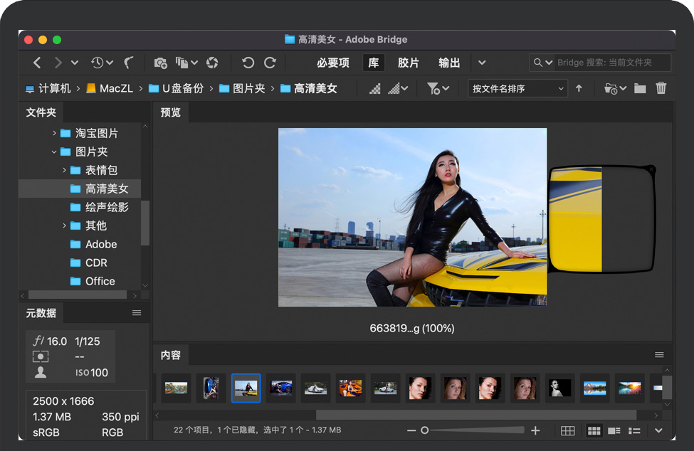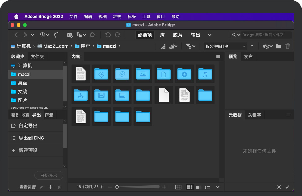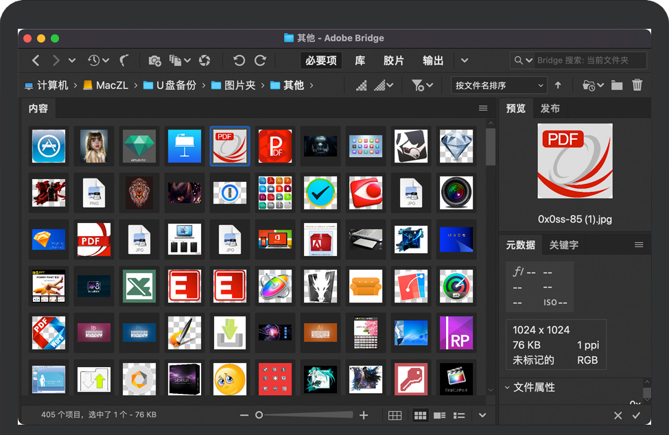 Adobe Bridge 2022 for Mac 是一款功能强大的创意资源管理器,可使您快速轻松地预览、整理、编辑和发布多个创意资源。编辑元数据。为资源添加关键字、标签和评级。使用系列来整理资源,以及使用强大的滤镜和元数据高级搜索功能来查找资源。