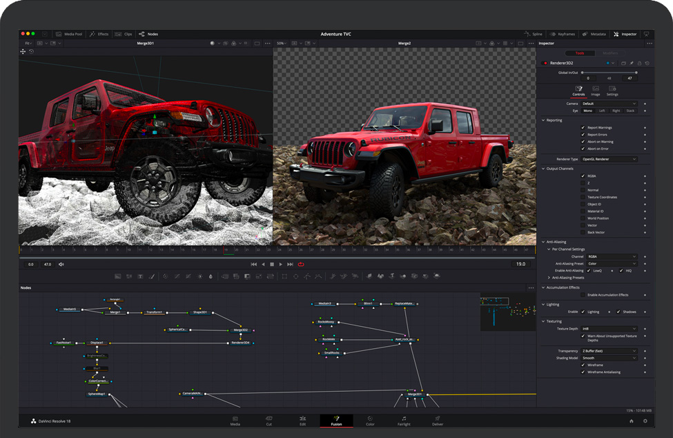 Fusion为您提供了一个真正的3D工作空间,拥有250多个工具,用于创建故事片质量的视觉效果和令人惊叹的运动图形!现在,您可以创建复杂的复合材料,使用矢量绘制,设置标题动画,添加3D粒子、关键点、旋转镜等,所有这些都在达芬奇Resolve中!