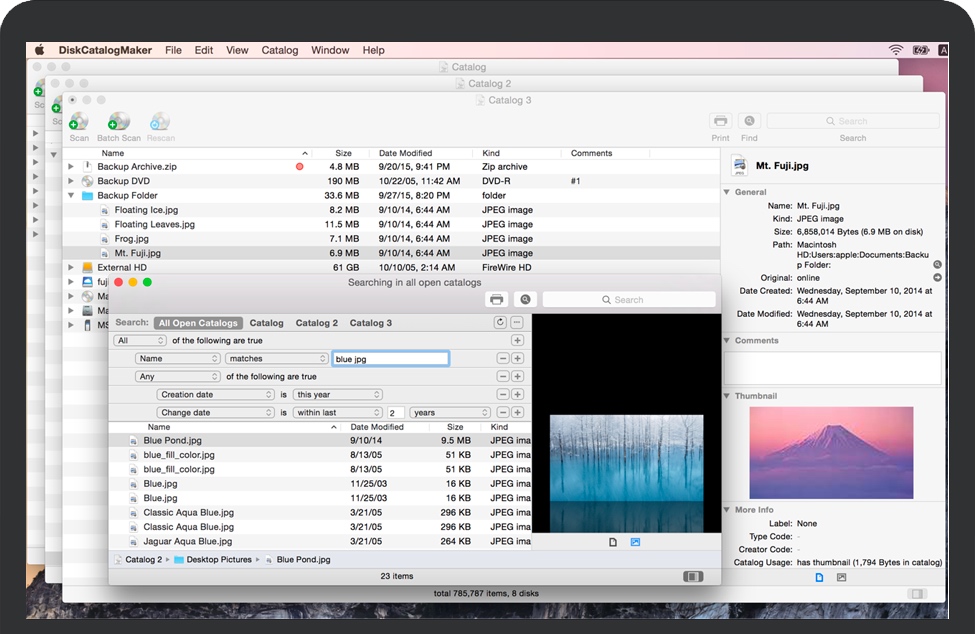 DiskCatalogMaker for Mac 是一款简单、智能、快速的磁盘目录制作工具。专门用于帮助您只需点击几下鼠标按钮即可对整个光盘集进行编目,可以扫描各种媒体存储设备甚至存档内容,其查找功能非常出色。“如果您在光盘上存档大量信息,您会喜欢编目功能。
