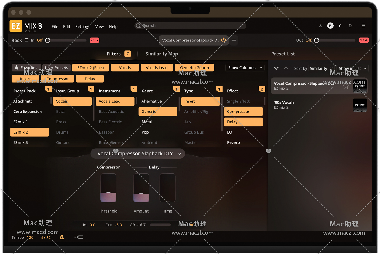 不再需要使用程序的多个实例来创建预设链 – EZmix 3 允许您直接在程序中按自己的顺序堆叠预设。创建自己独特的常用设置,可以无限调整和微调以匹配您正在处理的曲目。