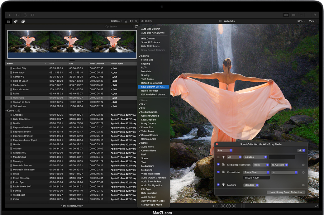 处理众多格式,包括ProRes、RED、XAVC、AVCHD、Avid DNxHR、Avid DNxHD、H.264、HEVC等等