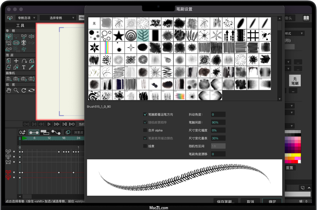 - Photoshop的PSD文件集成,可轻松导入、装配位图字符和背景并设置动画