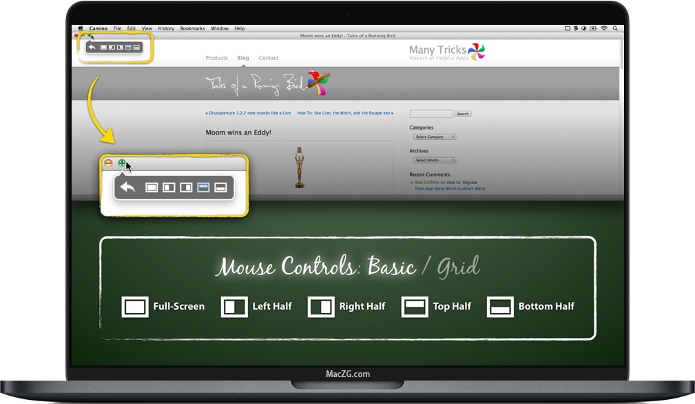 Moom使窗口管理像单击鼠标按钮一样简单,或者如果您是此类人之一,则可以使用键盘快捷键。