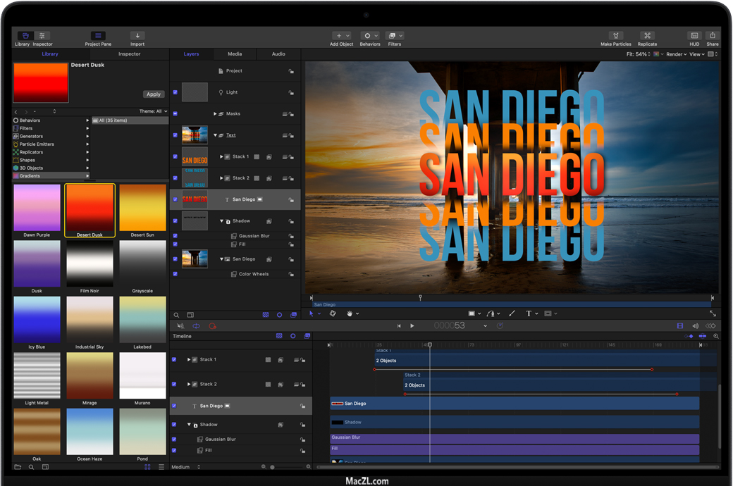 在全新MacBook Pro上使用Motion创建视觉特效速度飞快。