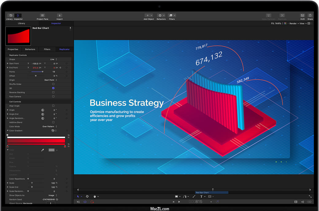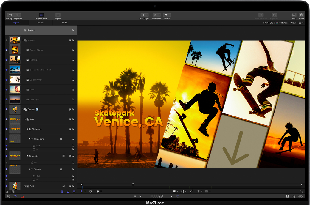 Motion采用实时设计引擎,可让你即时查看工作效果;丰富的工具和内容让你可创作出复杂的图形动画并赋予其出色的动画效果。