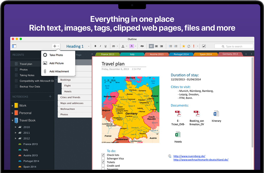 Outline for Mac 是一款优秀的笔记软件,在Mac上的笔记类软件中,如果论软件的易用性和界面设计,Outline绝对要比知名的印象笔记和OneNote要优秀很多倍,Outline能够兼容微软OneNote格式,支持Dropbox、Box、SkyDrive数据同步,加密、添加附件、Retina屏幕等功能,非常强大的一款笔记软件!