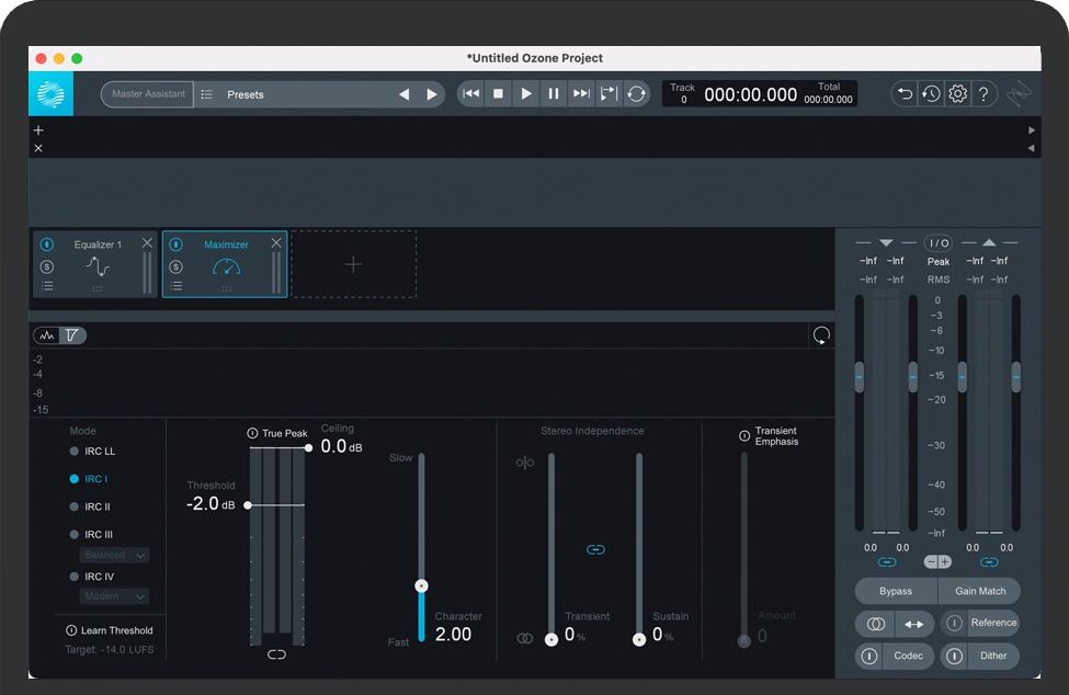 最大化器 使用Ozone的智能限幅器,使混音更响亮,同时保留动态效果。 -智能释放控制(IRC)模式可对您的声音做出反应,以减少失真和抽气 -阈值学习模式可智能地将响度设置为目标LUFS级别 -真正的峰值检测可确保导出后音频不会被裁剪 -所有版本的Ozone 9均提供Maximizer
