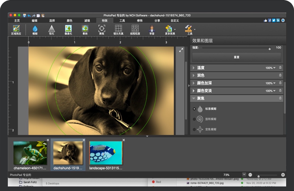 PhotoPad Professional for Mac 是一款数字照片/图像编辑软件。PhotoPad 界面简单明了却内含强大的编辑和效果功能集合,可提供专业的触感,让您创建令人惊艳的照片。PhotoPad是本世纪最稳定、最易用且功能最全面的照片编辑器之一,它具备所有强大的工具能满足各类人群的需要。