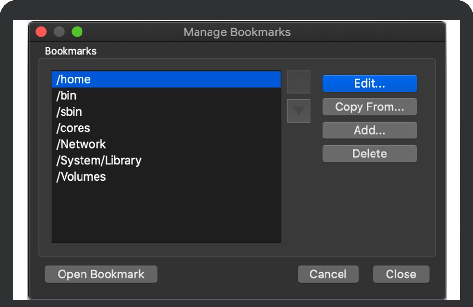 书签管理器允许您添加、删除和编辑书签以及从另一个会话复制它们。