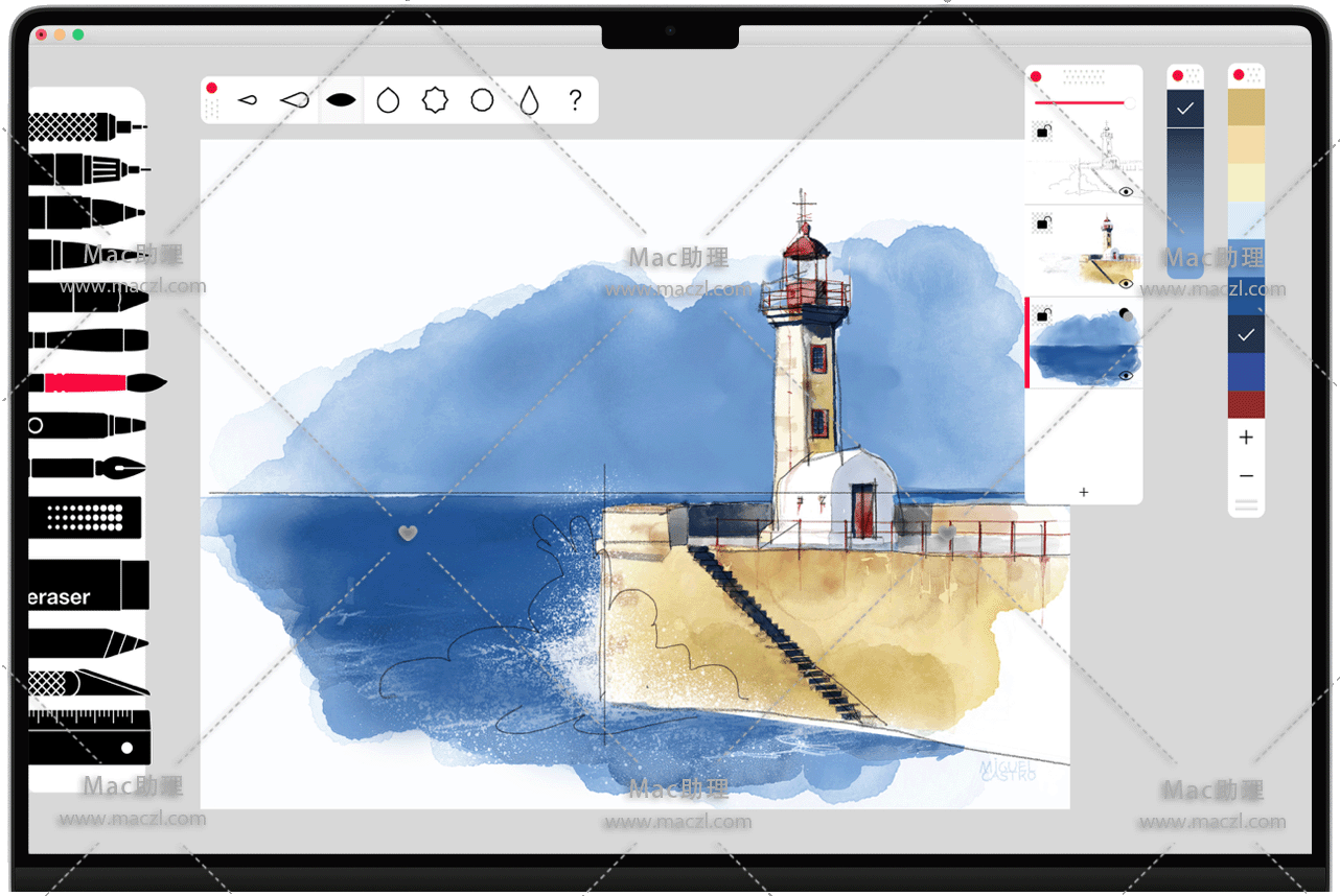 Tayasui Sketches Pro for Mac 是一款强大的绘图程序,可以帮您绘制漂亮的图画,我们坚持不懈地努力,不断改进 Sketches 画笔,给您带来最逼真的绘图和绘画工具。20 多款超真实的工具,极其真实的水彩湿画笔,智能画笔编辑器,颜色拾色器,导入照片,支持手写笔,Sketches 界面在设计时充分考虑了手写笔的需求,所有工具都支持压力,Sketches Pro支持导出为 psd 文件,是 Mac 上功能最全面且非常易于使用的绘图应用。
