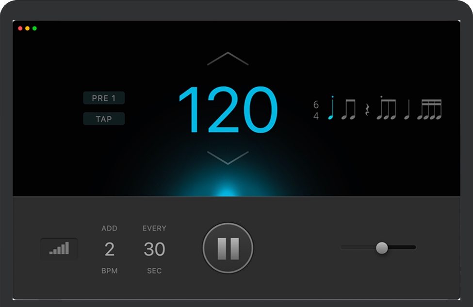 定期增加速度以进行认真的速度训练。只需设置 bpm 量和时间间隔。