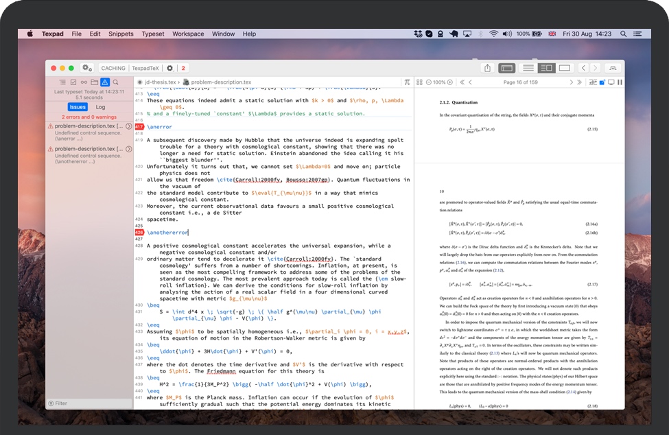 同样,普通TeX用户可以在Texpad中编辑和排版他们的文档。