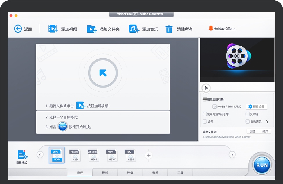 VideoProc 4K for Mac 是一款多功能视频处理程序。集成进行视频转换,压缩,下载,编辑,屏幕录像机和幻灯片制作等等功能。批量下载UHD / HD视频,音频,播放列表的简单解决方案;以47倍的GPU硬件加速速度进行转换,编辑和记录。