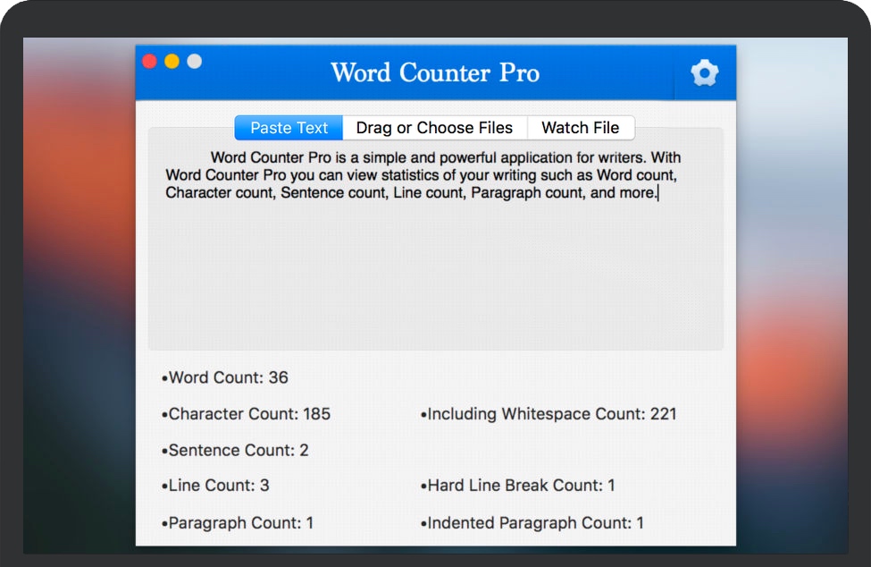 Word Counter Pro允许您以六种不同的方式查看统计信息: