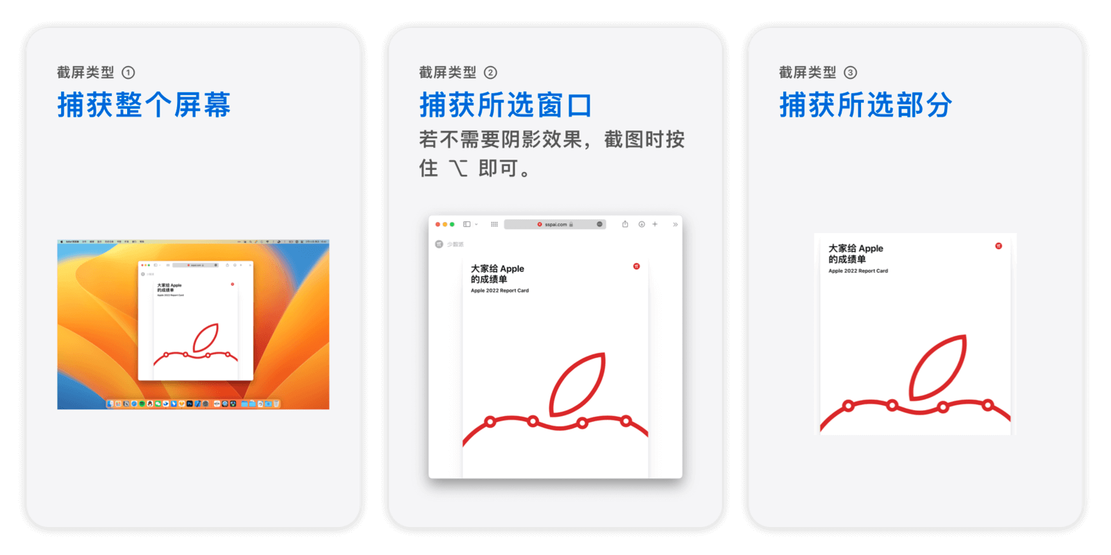 macOS 的截图工具是一个名为「截屏」的独立 app。不过,由于截图操作讲求效率,通过快捷键调用才是更常见的选择。macOS 为此内置了一系列快捷键: