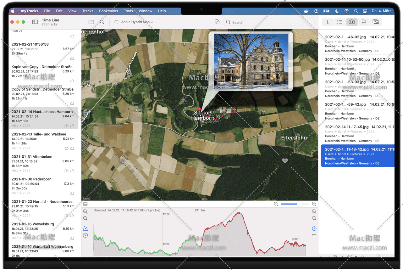 MyTracks for Mac 是一款在macOS上运行的GPS跟踪应用程序。该应用程序使用设备的GPS收集数据,允许实时查看路径、速度、距离和海拔。myTracks支持各种GPS记录器,以便将GPS轨迹传输到Mac。之后,您可以对您的照片文件进行地理标记,即将GPS位置写入您的照片。myTracks支持JPEG文件格式和各种RAW格式。