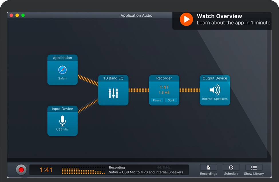Audio Hijack 直观的音频网格提供了一个非常棒的管道式视图,可以准确显示音频的流动方式,因此您可以轻松理解它。