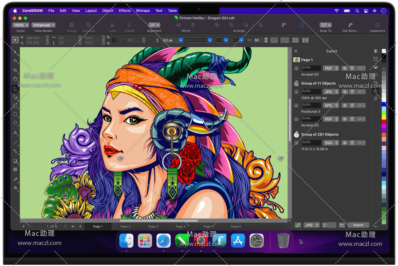 使用 CorelDRAW for Mac 强大的矢量插图工具将简单的线条和形状变成复杂的艺术品。借助多种通用形状和绘图工具创建曲线。使用轮廓、封套、渐变和网状填充等效果工具,为您的矢量插图添加创意效果。