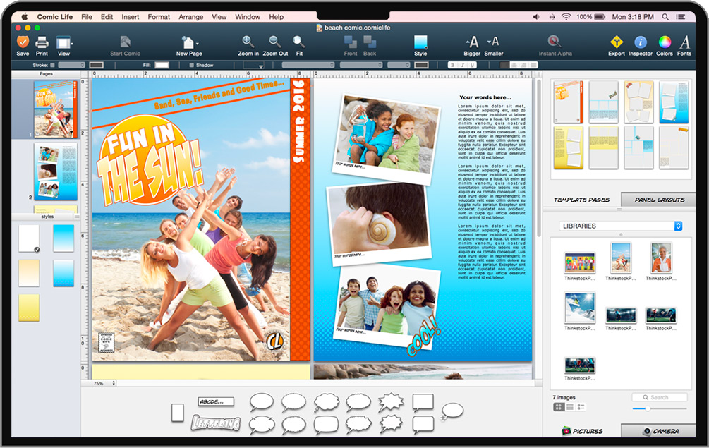 从Comic Life的用户友好界面,您可以访问将普通图片转换为精彩照片漫画所需的所有工具和功能。