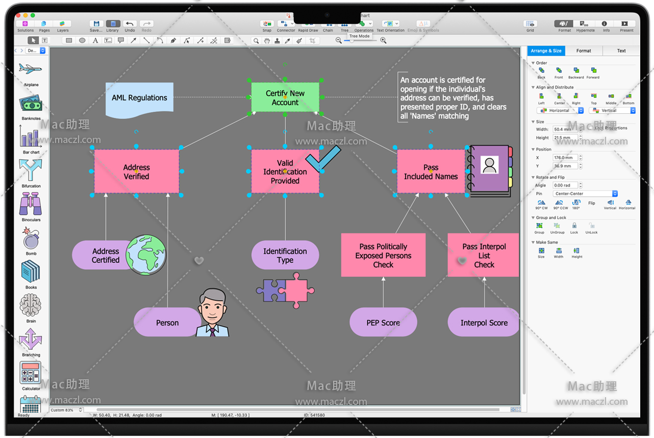 ConceptDraw DIAGRAM for Mac 是一款多功能的图表工具,它提供了绘图的共享,并通过演示和许多导出选项协助团队协作。ConceptDraw DIAGRAM一直被认为是macOS上的MSVisio替代品,它提供了大量用于生成平面徽标、地铁地图、UML图表、人力资源报告、组织结构图的矢量模板,工艺流程、机械系统、电路、楼层布局等。
