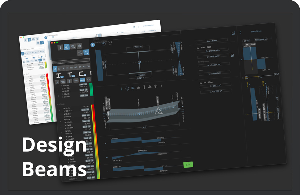 该软件是针对机械工程,土木工程和结构工程经过六年多的不断开发和创新的结果。当您学习材料力学时,该工具将帮助您从第一天开始就应用梁弹性理论,并且它将在以后的任何时候成为您的首选参考。