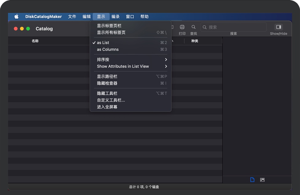 安装完成后,打开【DiskCatalogMaker】软件,点击导航栏左上角的“DiskCatalogMaker” → “注册 DiskCatalogMaker...”;