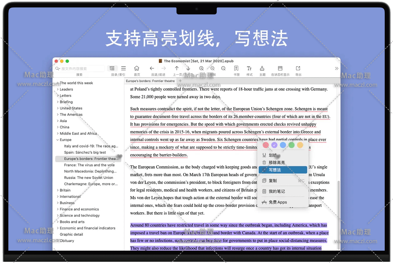 EPUB 阅读器 for Mac 是一款支持 EPUB/MOBI 格式的全能阅读工具,内置 AI 助手辅助阅读,兼具格式转换、图片提取、快捷键操控等实用功能,主打简洁界面与沉浸式阅读体验,适合 Mac 用户高效管理和深度阅读电子书。