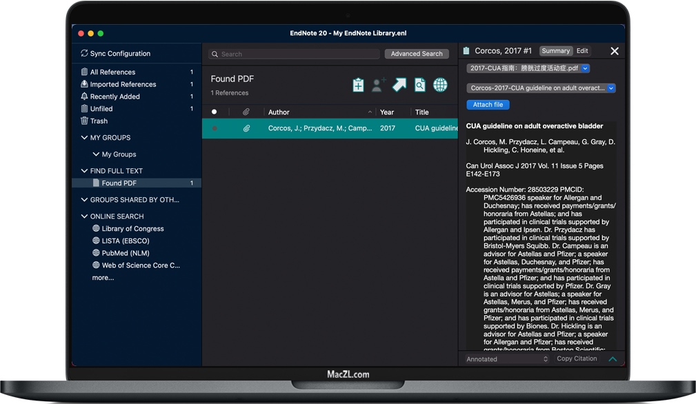 EndNote 20 for Mac 是一款专业的学术论文文献管理软件,支持国际期刊的参考文献格式有3776 种,写作模板几百种,涵盖各个领域的杂志。如果您准备写SCI 稿件,非常有必要采用此软件。EndNote X9 能直接连接上千个数据库,并提供通用的检索方式,为您提高了科技文献的检索效率。EndNote 20 能管理的数据库没有上限,至少能管理数十万条参考文献。