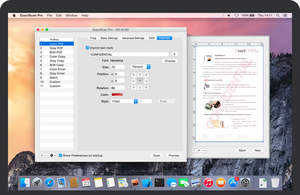 ExactScan 是一种现代扫描解决方案,包括来自Avision、 Canon、 Fujitsu、 HP、 Kodak、 Oki、 Panasonic、 Visioneer和 Xerox 的500 多种不同的文档扫描仪驱动程序 ,否则这些驱动程序不附带制造商的 Mac 驱动程序,因此不会根本没用。此外,它还允许使用带有TWAIN和ImageCapture驱动程序的不同扫描仪。