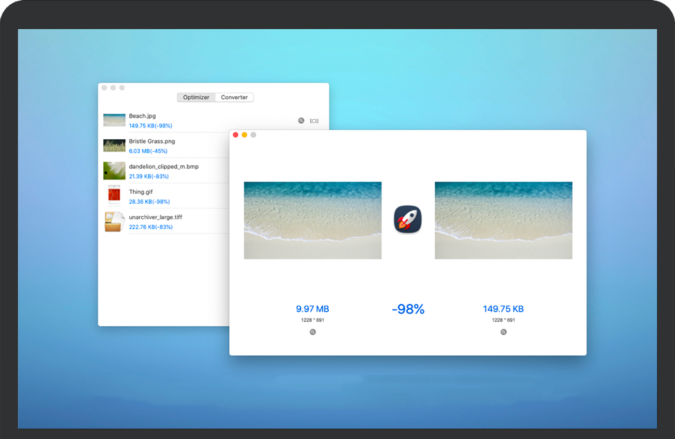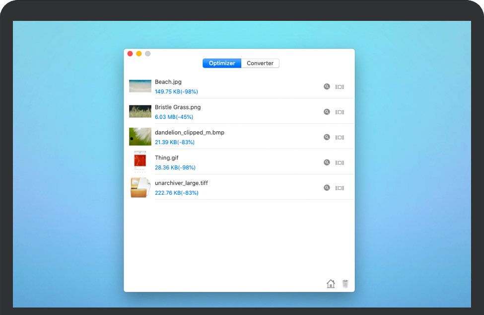 Image Optimizer Pro for Mac是一款可以对图片(PNG、JPG、TIF、GIF、BMP、PSD、HEIC)进行无损压缩的macOS应用程序。最高可以将图片无损减少75%-95%,Image Optimizer可以帮助用户对体积较大的图片进行压缩,提供五种超强大优化功能,支持多种图片格式,并且画质无损的情况下一键快速压缩。
