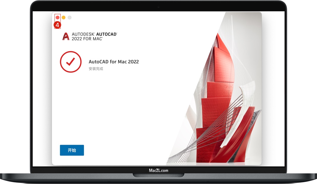等待软件安装完成后,如下图,先不要打开软件,点击左上角的红色关闭按钮,关闭退出CAD。