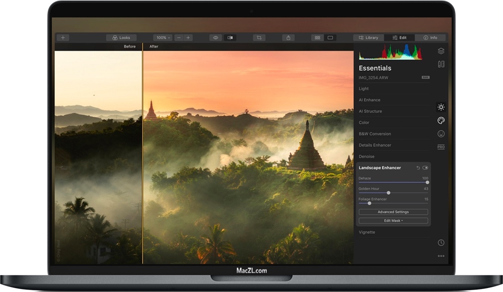 Luminar 4 for Mac 是拉普拉斯网站整理的一款强大的摄影师后期图像处理软件,Luminar 4 可以处理照片的各种问题,内置顶级的处理工具,可以弥补图像光线、色调、光度、对比度、曝光不足等问题,支持多种图片格式,独创人工智能滤镜2.0技术,只需要一个滑块就可以进行很多调整。能够轻松解决色调、细节、曝光、景深、颜色和其他很多问题。新的“人像识别”技术能够识别照片中的人像并且选择性的应用调整,从而得到更加真实的照片。