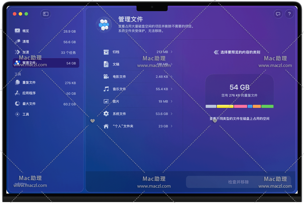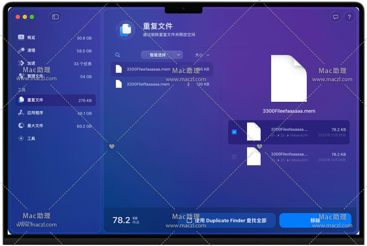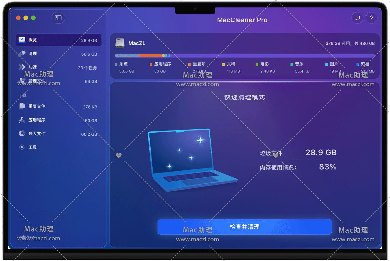 MacCleaner Pro for Mac是一款 Mac 专属系统优化工具,核心定位是通过专业工具 实现对 Mac 的深度清理、性能加速与磁盘空间管理,帮助用户保持设备流畅运行、释放冗余存储,适用于需要优化 Mac 性能或解决磁盘空间不足的用户。