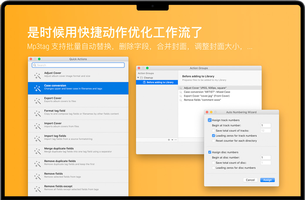 Mac的Mp3tag允许在可重复使用的工作流程中组合许多操作,这些操作可应用于您的文件。