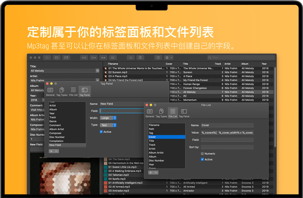 Mac的Mp3tag提供可自定义的标签面板,允许使用您感兴趣的字段。