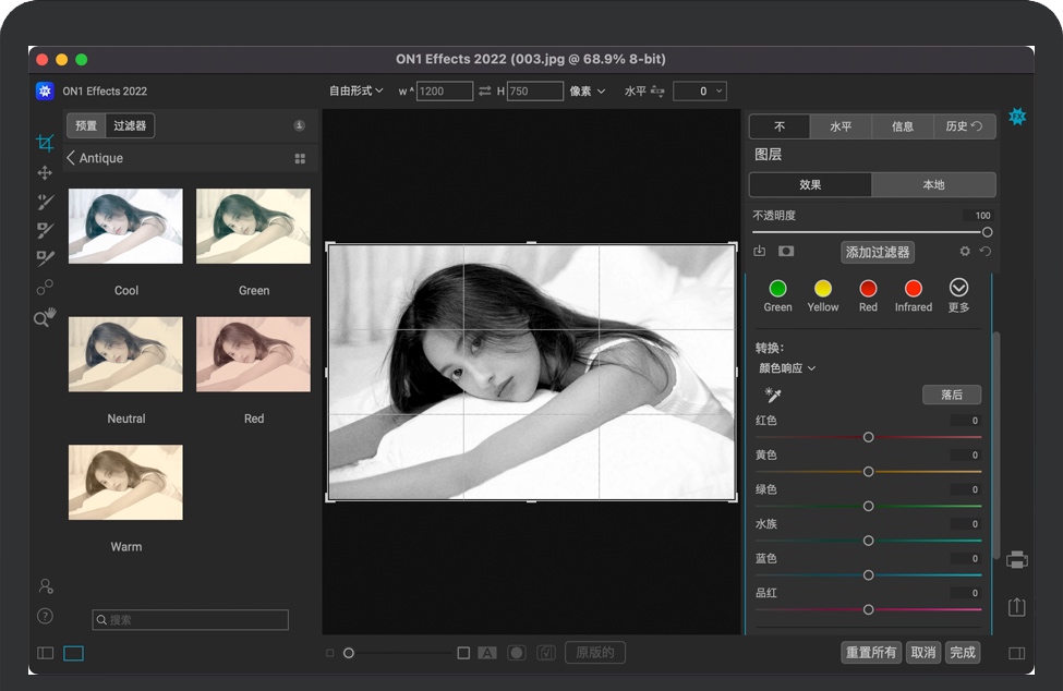 只需点击几下,即可立即为任何照片设置样式并创建您想要的任何外观。ON1 Photo RAW中包含数百个预设、滤镜、LUT、纹理和边框,可提供无限的创意选项。您可以组合、混合和自定义任何组合。