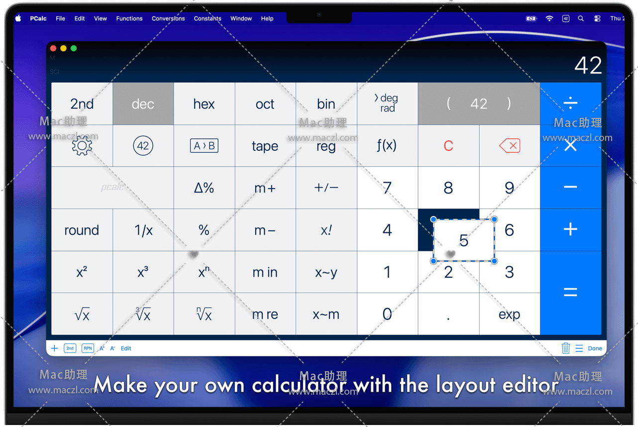 *一个完整的按钮布局编辑器 - 制作自己的计算器以最适合您的需求,自动与 iPhone 和 iPad 同步,并与他人共享。