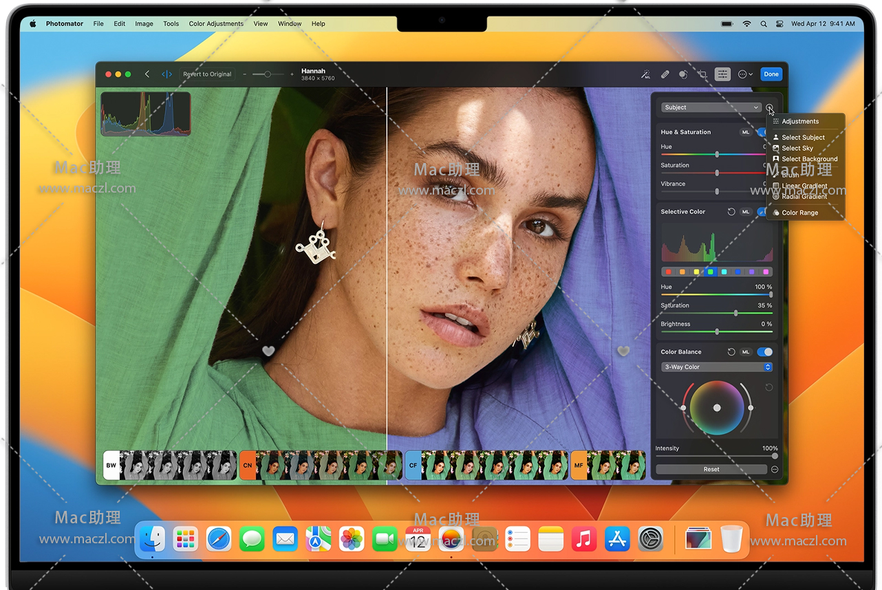 Photomator for Mac是一款功能强大的修图工具,为提高、修复和管理您的图片提供了不可思议的工具。 其中包括了大量前沿的颜色调整功能,由 AI 驱动的自动选择功能,支持超过650种 RAW 图像格式,一款可以修复不想要对象的神奇工具,以及更多强大功能。 简单来说,就是制作精美照片所需的一切。