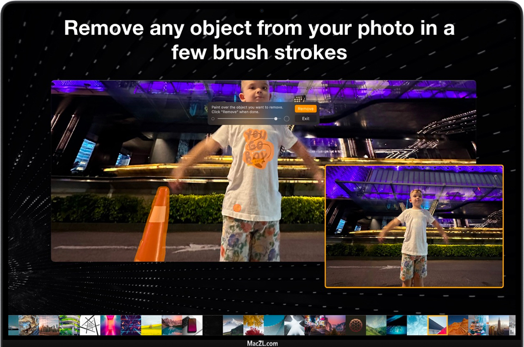 使用对象删除工具删除不需要的对象、人员或缺陷。Pixea将重建对象背后的内容。使用克隆工具对结果进行润色。对象删除基于机器学习功能。