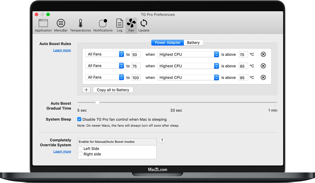 使用手动模式立即将它们提升到最大速度,以立即冷却Mac。