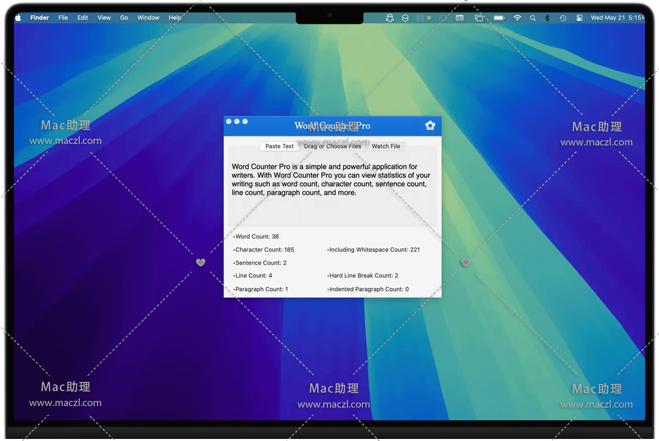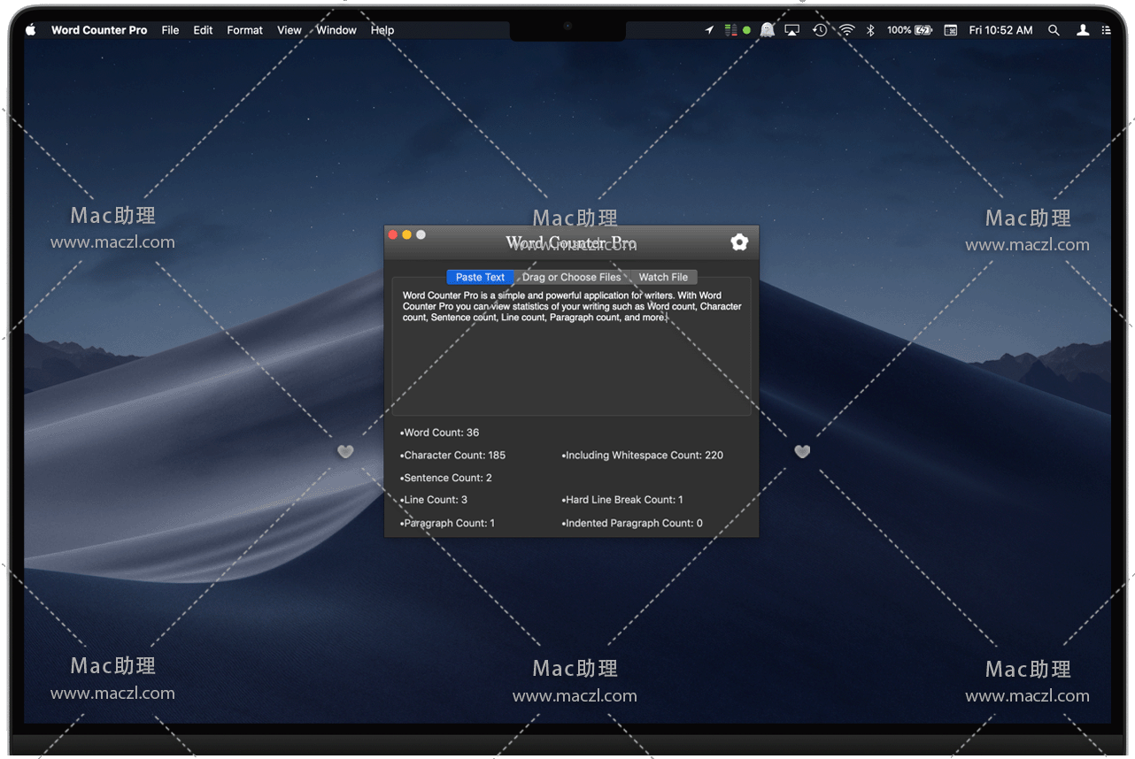Word Counter Pro for Mac 是一个针对作家的简单而强大的应用程序,可以查看字数,字数,句数等。使用Word Counter Pro,您可以查看写作统计信息,例如字数,字符数,句子数,行数,段落数等。