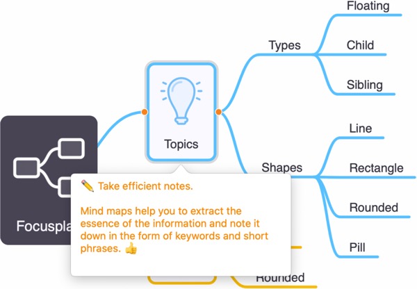 灵活的思维导图Focusplan 让您可以通过检查器面板轻松配置思维导图每个元素的样式和格式,例如边框、分支、字体和颜色。 |