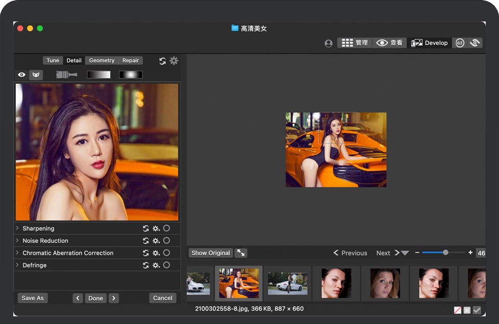 使用开发模式中的专业处理工具微调、调整细节并修复图像的几何形状。