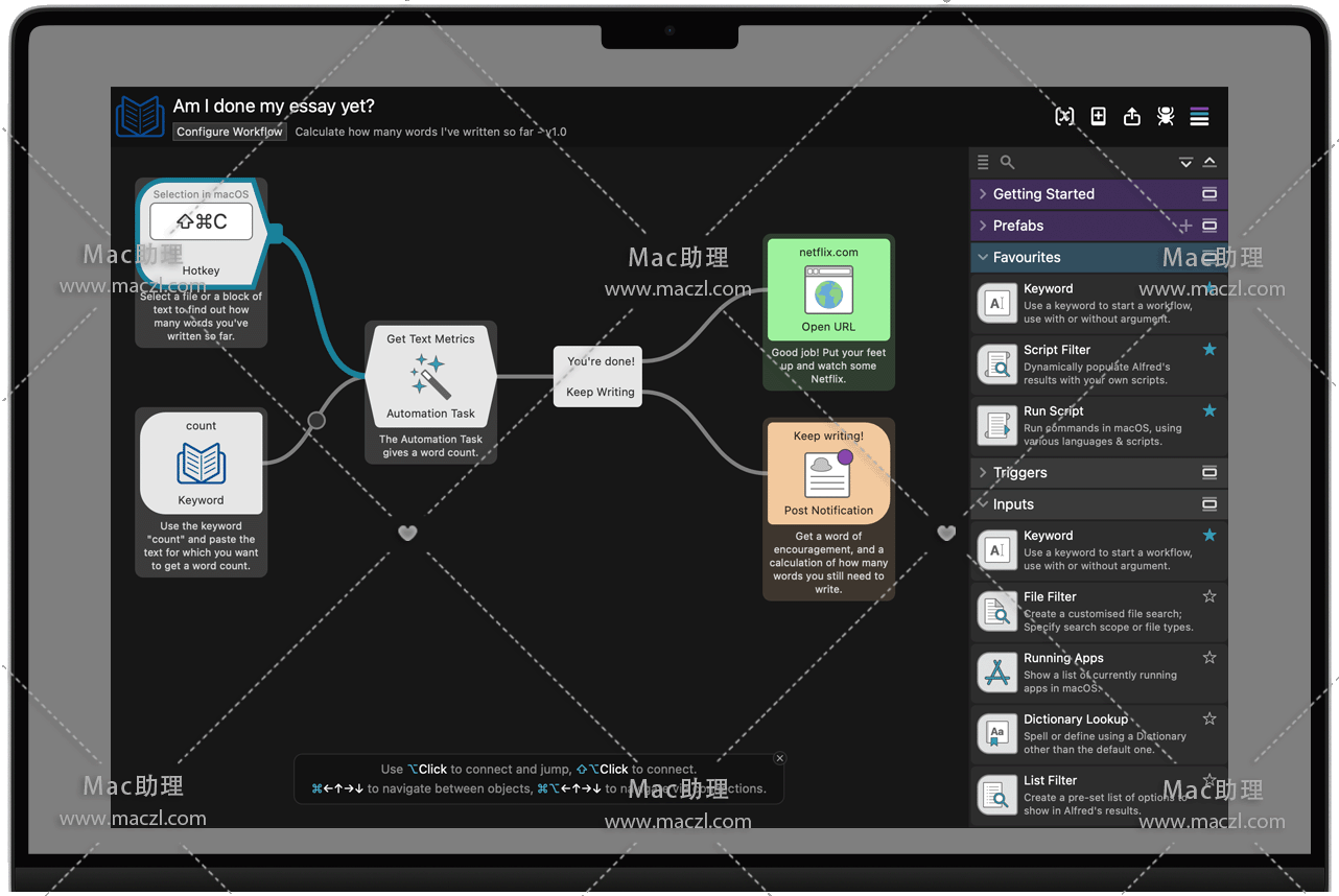 Alfred 5添加了交互式入门指南,向新用户介绍工作流编辑器,并引导他们创建第一个工作流