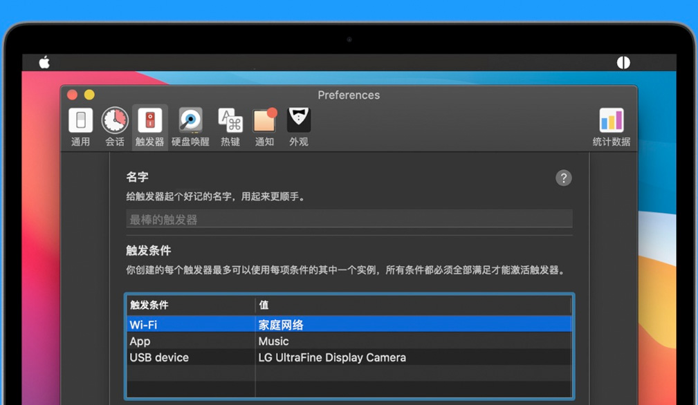 高级自动化功能创建一个Trigger(触发器)来自动保持你的Mac处于唤醒状态。