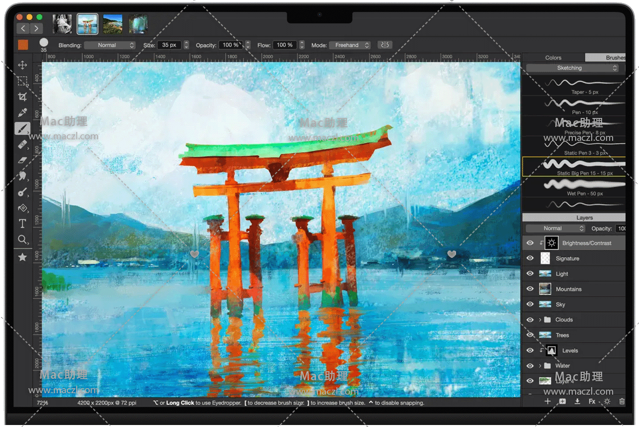 Artstudio Pro for Mac 是支持macOS和iOS的最强大的绘图和照片编辑应用程序。著名的ArtStudio应用程序的后续版本经过重新设计,引入了许多新功能和升级更新,充分利用最新技术Metal、iCloud Drive,并针对64位多核处理器进行了优化,以实现最流畅的工作流。具有数百种素材,用户能以最流行的格式(ABR、TPL、PAT、GRD、ASE、ACO)导入资源,从而立即访问数百万款笔刷、图案、渐变、色样和字体。它会提高您的创造力,帮您快速轻松地实现灵感。
